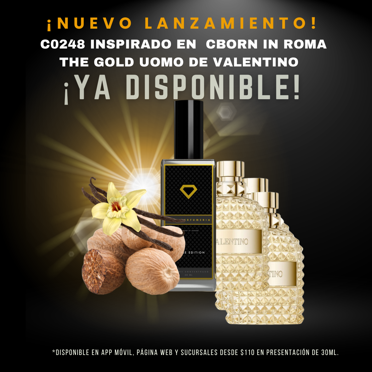 Born in Roma The Gold Uomo de Valentino es una fragancia de la familia olfativa Oriental Amaderada para Hombres. Esta fragancia es nueva. Born in Roma The Gold Uomo se lanzó en 2024. Las Notas de Salida son notas solares, notas especiadas y nuez moscada; la Nota de Corazón es cedro de Virginia; las Notas de Fondo son vainilla y ámbar.